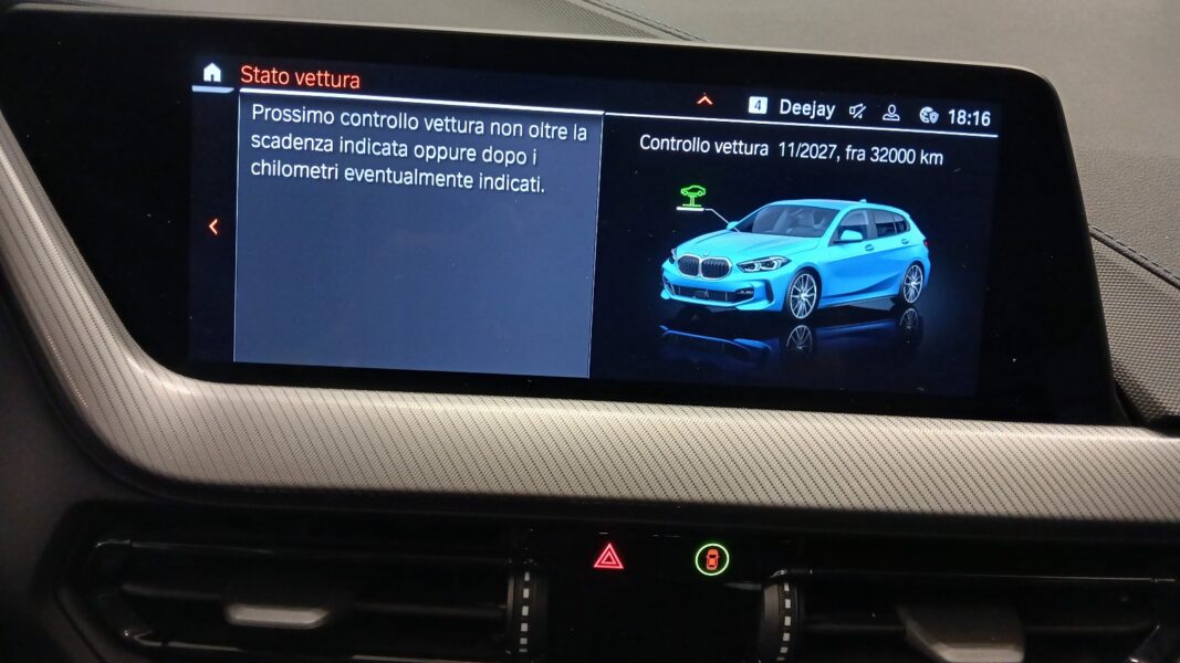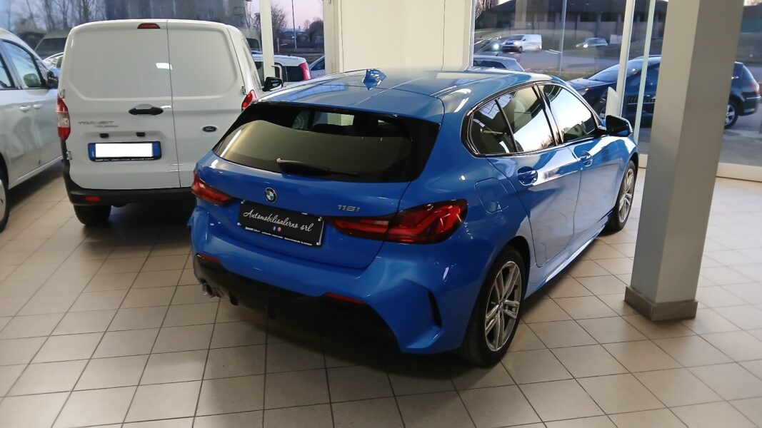 AUTO CON CARATTERISTICHE PARI AL NUOVO MODELLO 116 I CON PACCHETTO M-SPORT INTERNO ED ESTERNO ,DOTATA DI CLIMA AUTOMATICO BIZONA,SERVOSTERZO,4 VETRI ELETTRICI,INTERNI SPORTIVI CON ALLESTIMENTO M,RUOTE IN LEGA DA 17′ LOGATI M-SPORT,FARI LED,SEDILE CON REGOLAZIONE ELETTRICA,VIRTUAL COCKPIT ,SISTEMA DI NAVIGAZIONE SATELLITARE INTEGRATO CON MONITOR IN PLANCIA ,ASSETTO SPORTIVO M-TECHNIC,SENSORI PARCHEGGIO ANT PIU POST,PRESA USB ANT PIU POST .